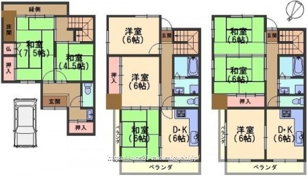 - ※5DK(1階・2階)・3DK(3階)・駐車スペース付