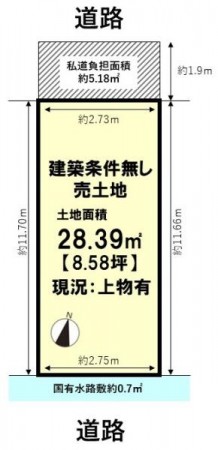 ※テープ測量による仮測量面積約32.00平米(北側私道負担分やっく5.18平米、セットバック面積約0.27平米含む)