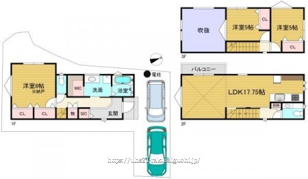 (1F:38.09平米、2F:36.44平米、3F:23.19平米)