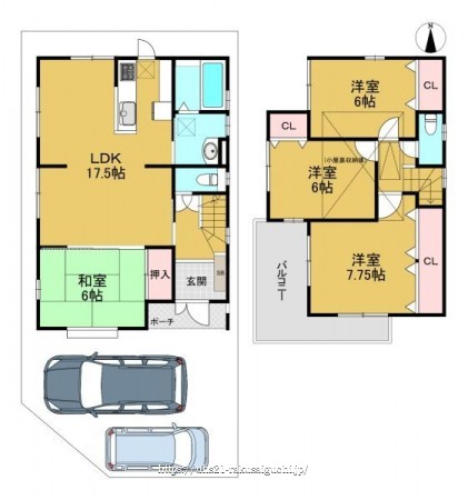 階数 区分 広さ 1F LDK 17.5帖 1F 和 6.0帖 2F 洋 7.8帖 2F 洋 6.0帖 2F 洋 6.0帖 - 駐車場