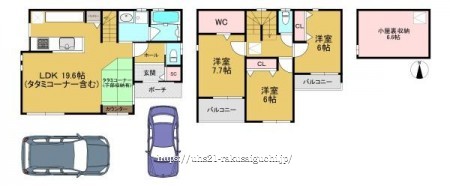階数 区分 広さ 1F LDK 19.6帖 2F 洋 7.7帖 2F 洋 6.0帖 2F 洋 6.0帖 - 駐車場