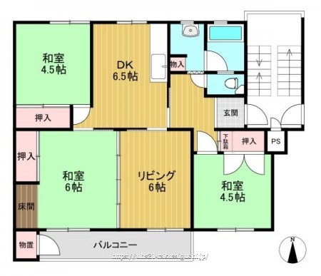 ファミリー世帯におすすめの3LDK!南向きバルコニーで陽当たり良好!