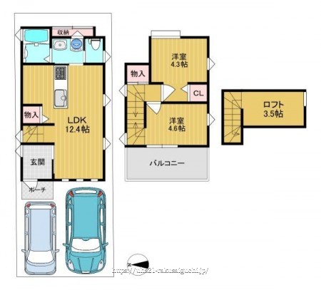 階数 区分 広さ 1F LDK 12.4帖 2F 洋 4.6帖 2F 洋 4.3帖 - 駐車場