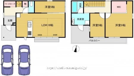 階数 区分 広さ 1F LDK 16.0帖 1F 洋 5.0帖 2F 洋 9.0帖 2F 洋 5.0帖 - 駐車場