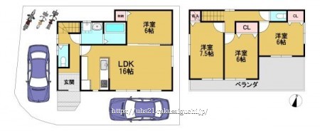 階数 区分 広さ 1F LDK 16.0帖 1F 洋 6.0帖 2F 洋 7.5帖 2F 洋 6.0帖 2F 洋 6.0帖 - 駐車場