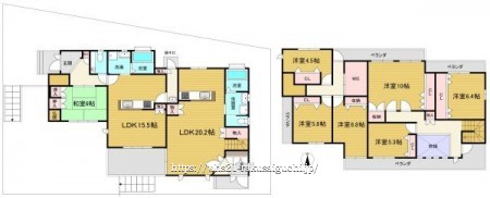 階数 区分 広さ 1F LDK 20.2帖 1F LDK 15.5帖 1F 和 6.0帖 2F 洋 10.0帖 2F 洋 6.8帖 2F 洋 6.4帖 2F 洋 5.8帖 2F 洋 5.3帖 2F 洋 4.5帖 - 駐車場