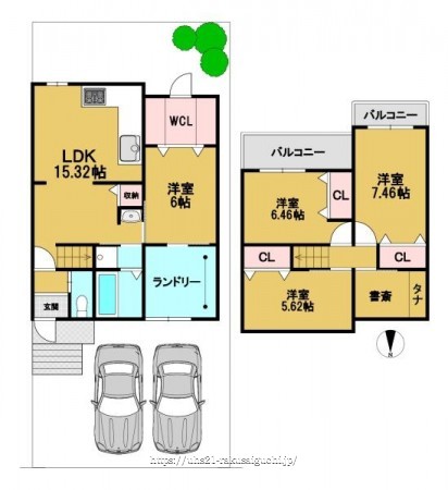 階数 区分 広さ 1F LDK 15.3帖 1F 洋 6.0帖 2F 洋 7.5帖 2F 洋 6.5帖 2F 洋 5.6帖 - 駐車場