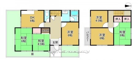 階数 区分 広さ 1F DK 6.0帖 1F 洋 6.0帖 1F 和 6.0帖 1F 和 4.5帖 2F 和 6.0帖 2F 洋 6.0帖 2F 洋 4.5帖 - 駐車場