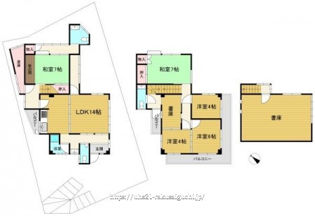 階数 区分 広さ 1F LDK 14.0帖 1F 和 7.0帖 2F 和 7.0帖 2F 洋 6.0帖 2F 洋 4.0帖 2F 洋 4.0帖 - 駐車場