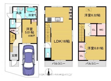 (1F:24.45平米 2F:30.84平米 3F:60.64平米)