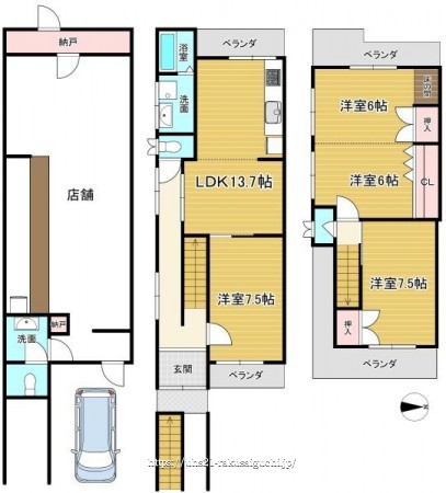 階数 区分 広さ 2F LDK 13.7帖 2F 洋 7.5帖 3F 洋 7.5帖 3F 洋 6.0帖 3F 洋 6.0帖 - 駐車場