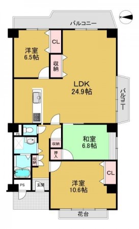 南・東・西の三方向の最上階角部屋!陽当たり・通風・眺望良好!