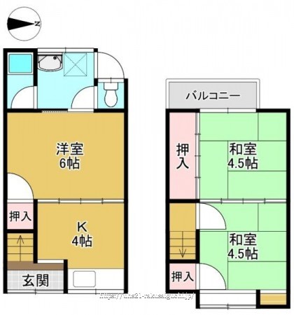 階数 区分 広さ 1F K 4.0帖 1F 洋 6.0帖 2F 和 4.5帖 2F 和 4.5帖 - 駐車場
