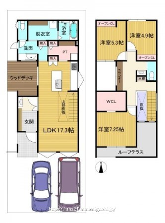 ※建築条件土地の情報内に掲載されている、建物プラン例は、土地購入者の設定プランの参考の一例であって、プランの採用可否は任意です。