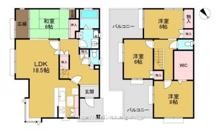 階数 区分 広さ 1F LDK 18.5帖 1F 和 6.0帖 2F 洋 8.0帖 2F 洋 6.0帖 2F 洋 6.0帖 - 駐車場