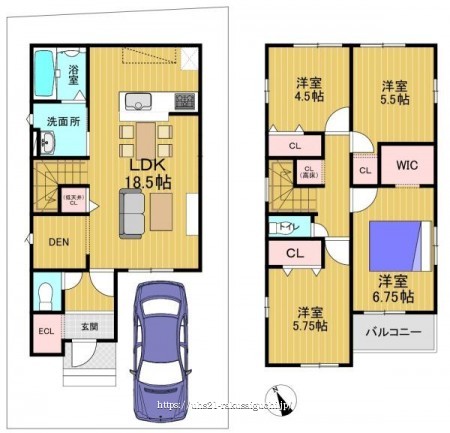 階数 区分 広さ 1F LDK 18.5帖 2F 洋 4.5帖 2F 洋 5.5帖 2F 洋 5.8帖 2F 洋 6.8帖 - 駐車場