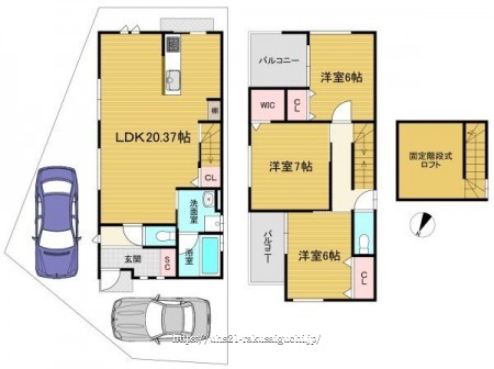 階数 区分 広さ 1F LDK 20.4帖 2F 洋 7.0帖 2F 洋 6.0帖 2F 洋 6.0帖 - 駐車場