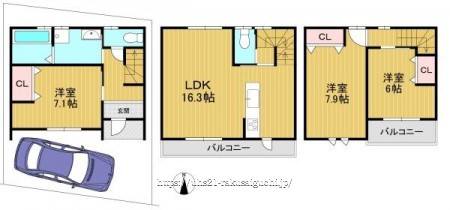 - 【建築プラン例】 土地価格:1398万円 建物価格:1800万円 延床面積:88.47平米(1F:28.55平米、2F:31.30平米 3F:28.62平米)