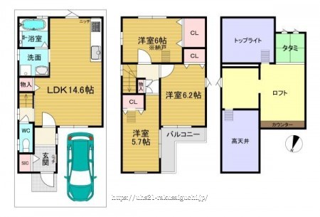 階数 区分 広さ 1F LDK 14.6帖 2F 洋 6.2帖 2F S 6.0帖 2F 洋 5.7帖 - 駐車場