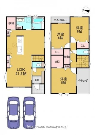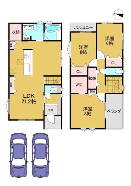 階数 区分 広さ 1F LDK 21.2帖 1F 和 8.0帖 2F 洋 6.0帖 2F 洋 6.0帖 - 駐車場