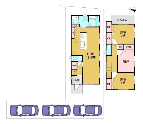 階数 区分 広さ 1F LDK 19.5帖 1F 和 7.0帖 2F 洋 6.0帖 2F S 6.0帖 - 駐車場