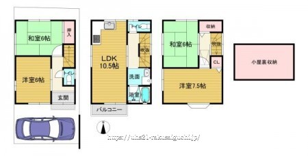階数 区分 広さ 1F 洋 6.0帖 1F 和 6.0帖 2F LDK 10.5帖 3F 洋 7.5帖 3F 和 6.0帖 - 駐車場