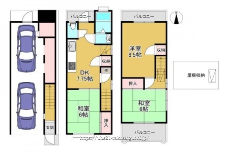 階数 区分 広さ 2F DK 7.8帖 2F 和 6.0帖 3F 洋 8.5帖 3F 和 6.0帖 - 駐車場
