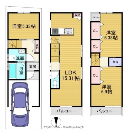 (1F:32.42平米、2F:30.08平米、3F:28.01平米)