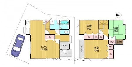階数 区分 広さ 1F LDK 19.5帖 2F 洋 10.0帖 2F 洋 6.0帖 2F 和 6.0帖 - 駐車場
