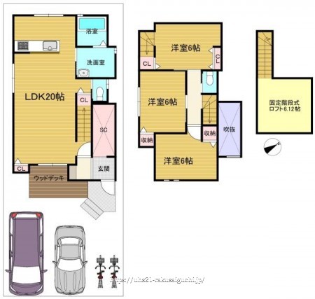 延床面積:91.06平米(1F:51.37平米、2F:39.69平米)