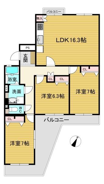 全居室6帖以上の3LDK!LDKゆとりの16.3帖!