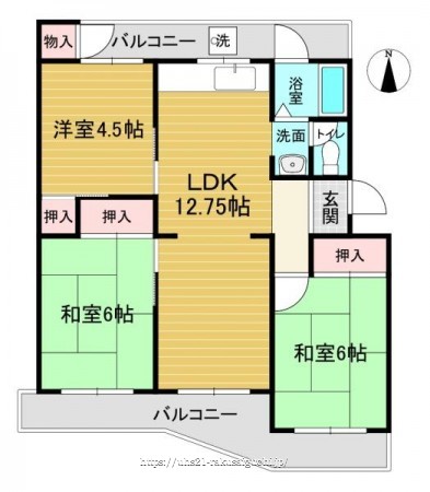 マンション2階部分!南北両面バルコニーで陽当り・通風良好!