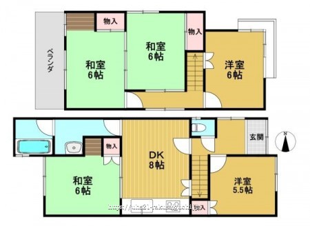 階数 区分 広さ 1F DK 8.0帖 1F 和 6.0帖 1F 洋 5.5帖 2F 洋 6.0帖 2F 和 6.0帖 2F 和 6.0帖 - 駐車場