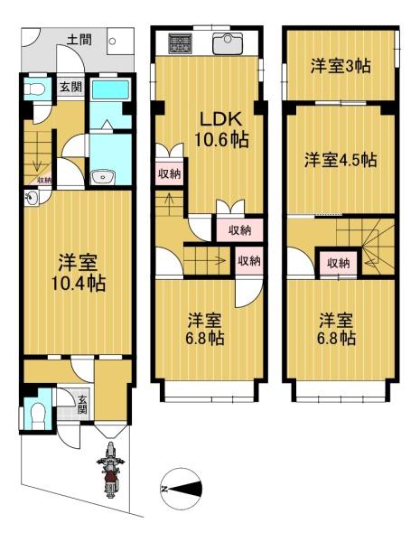 階数 区分 広さ 1F 洋 10.4帖 2F LDK 10.6帖 2F 洋 6.8帖 3F 洋 7.3帖 3F 洋 6.8帖 3F 洋 4.4帖 - 駐車場