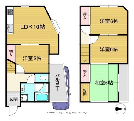 階数 区分 広さ 1F LDK 10.0帖 1F 洋 5.0帖 2F 和 6.0帖 2F 洋 6.0帖 2F 洋 6.0帖 - 駐車場