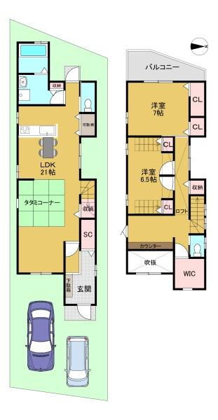 階数 区分 広さ 1F LDK 21.0帖 2F 洋 7.0帖 2F 洋 6.5帖 - 駐車場
