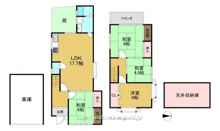 階数 区分 広さ 1F LDK 17.7帖 1F 和 6.0帖 2F 和 8.0帖 2F 洋 6.0帖 2F 和 4.5帖 - 駐車場