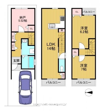 (1F:23.13平米 2F:27.90平米 3F:26.33平米)