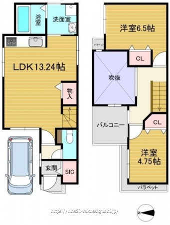 階数 区分 広さ 1F LDK 13.2帖 2F 洋 6.5帖 2F 洋 4.8帖 - 駐車場