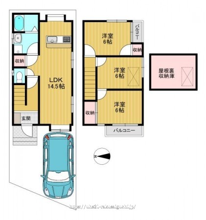 階数 区分 広さ 1F LDK 14.5帖 2F 洋 6.0帖 2F 洋 6.0帖 2F 洋 6.0帖 - 駐車場