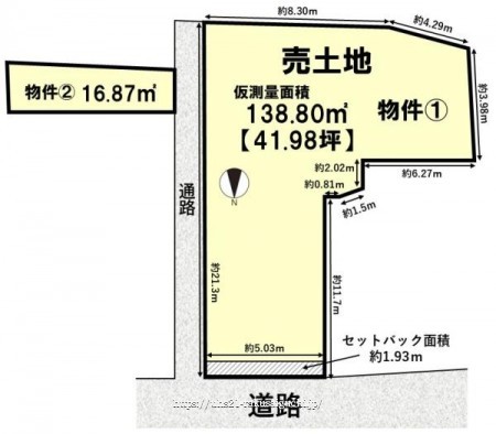 - ※上記土地面積以外に物件2の約16.87平米(約5.1坪)も売買対象面積です。