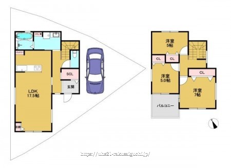 ※建築条件土地の情報内に掲載されている、建物プラン例は、土地購入者の設定プランの参考の一例であって、プランの採用可否は任意です。