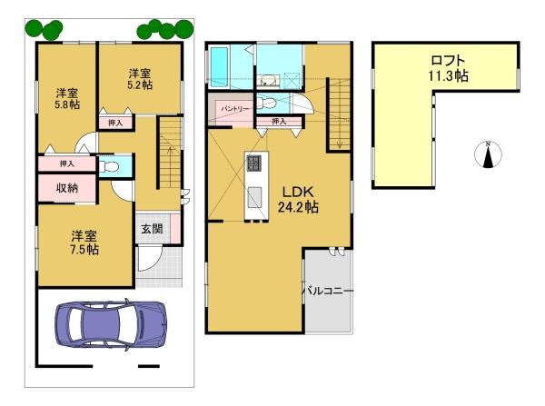 ※建築条件土地の情報内に掲載されている、建物プラン例は、土地購入者の設定プランの参考の一例であって、プランの採用可否は任意です。