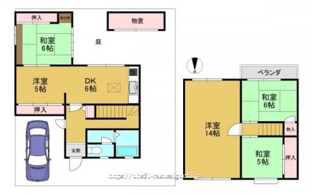 階数 区分 広さ 1F DK 6.0帖 1F 和 6.0帖 1F 洋 5.0帖 2F 洋 14.0帖 2F 和 6.0帖 2F 和 5.0帖 - 駐車場
