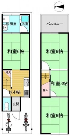 階数 区分 広さ 1F 和 6.0帖 1F K 4.0帖 2F 和 6.0帖 2F 和 6.0帖 2F 和 3.0帖 - 駐車場