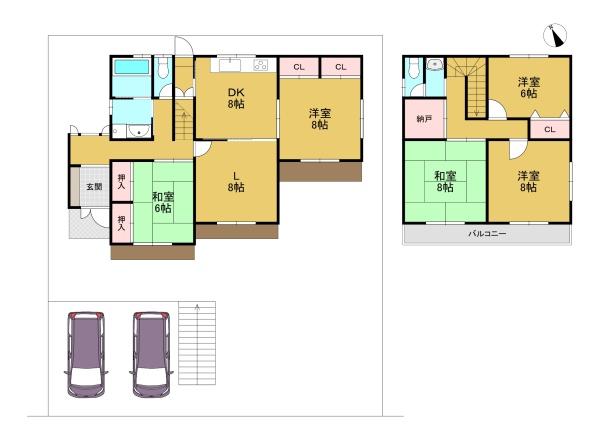 階数 区分 広さ 1F LDK 16.0帖 1F 洋 8.0帖 1F 和 6.0帖 2F 洋 8.0帖 2F 洋 6.0帖 2F 和 8.0帖 - 駐車場