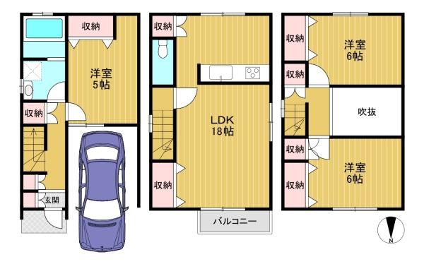 階数 区分 広さ 1F 洋 5.0帖 1F LDK 18.0帖 1F 洋 6.0帖 2F 洋 6.0帖 - 駐車場