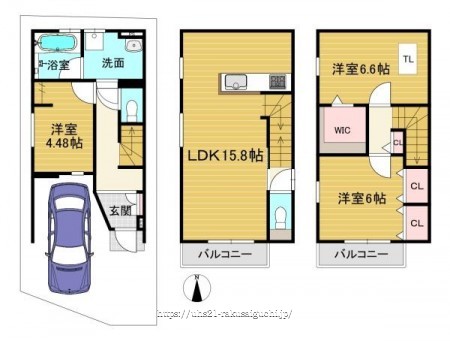階数 区分 広さ 1F 洋 4.5帖 2F LDK 15.8帖 3F 洋 6.6帖 3F 洋 6.0帖 - 駐車場