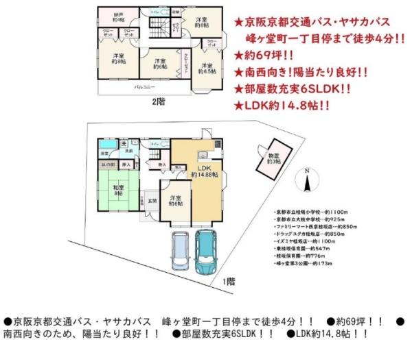 物件詳細 更新日/2026年04月19日 次回更新予定日/情報提供より8日以内に更新 お問い合わせ番号/ 10145 間取り この物件はご成約をいただきました ありがとうございました 中古戸建 3,680万円 京都府京都市西京区御陵峰ケ堂町1丁目 最寄駅 阪急電鉄京都線桂駅バス乗車13分バス停 峰ヶ堂町一丁目停歩4分東海道本線桂川駅バス乗車18分バス停 峰ヶ堂町一丁目停歩4分 間取り/面積 間取り 6SLDK 土地面積 228.82㎡ / 69.21坪 延床面積 146.56㎡ / 44.33坪 延床面積1F 74.52m2 延床面積2F 72.04m2 建物構造 木造 2階建 築年月 1999年07月 成約 この物件の主な特徴 - ※設備名をクリックで対象の設備の物件一覧を絞り込み