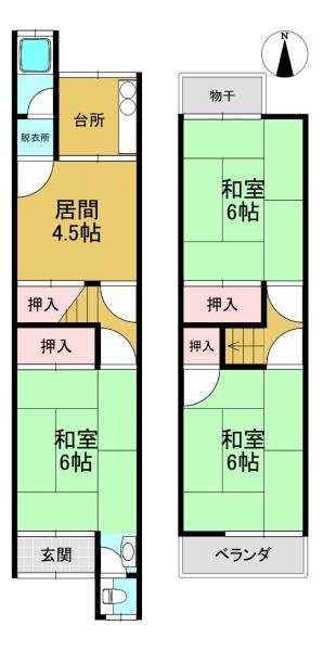 階数 区分 広さ 1F 和 6.0帖 1F 洋 4.5帖 2F 和 6.0帖 2F 和 6.0帖 - 駐車場
